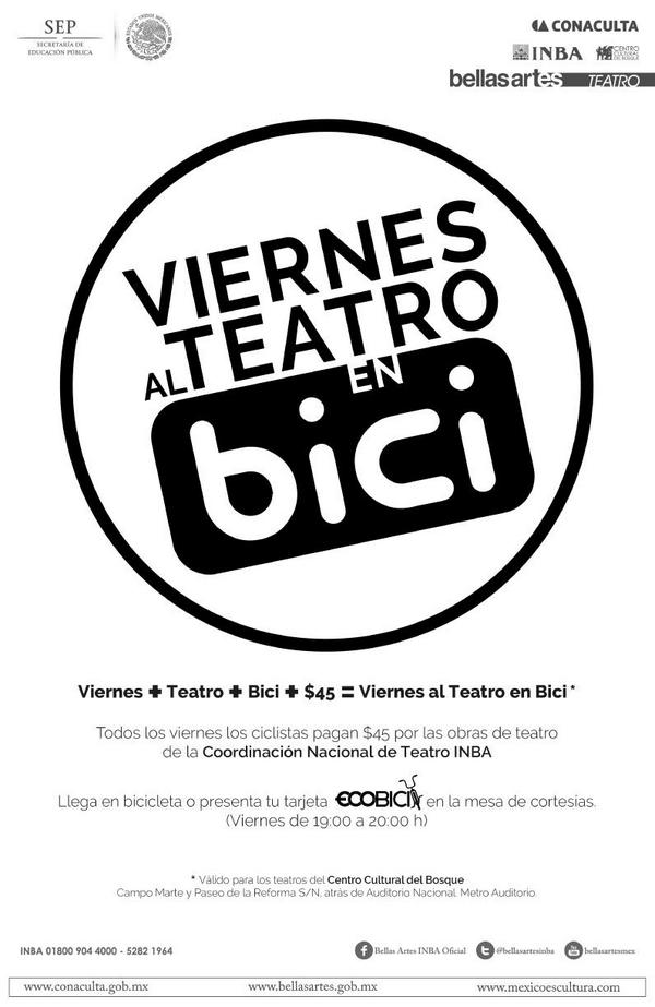 Interesante forma de promocionar el teatro a los ciclistas, ya que si vas a ver una obra de teatro en Bici te harán un buen descuento en la etrada.